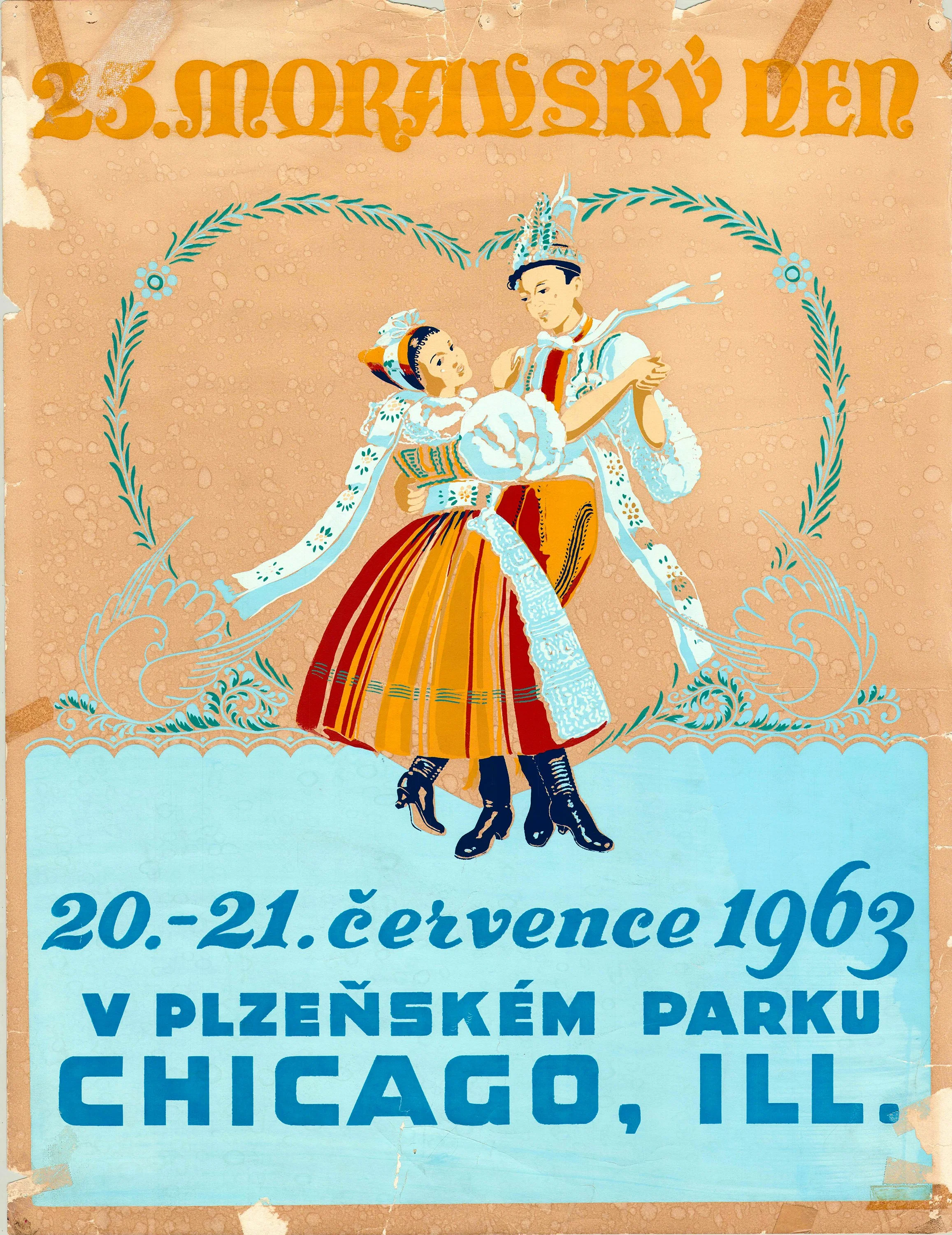 The first Moravian Day festival was held on September 24, 1939, in Pilsen Park, Chicago, Illinois. On that day, 26th Street came alive with the splendor of Moravian costumes, bands, floats, and horses as the grand parade moved from Pulaski Road to Pilsen Park. Thousands of spectators watched and applauded, marking the beginning of the annual tradition of Moravian Day—a celebration that continues today, bringing together Moravian, Czech, and Slovak communities from the Chicago area, as well as visitors from across the United States, Canada, and the Czech and Slovak Republics, all honoring their heritage.